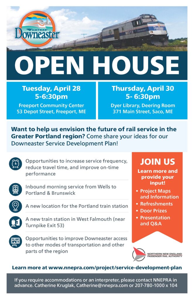 The Northern New England Passenger Rail Authority (NNEPRA) is currently developing a long-term plan for the Amtrak Downeaster. This effort, called a Service Development Plan (SDP),  will outline goals for improving and/or expanding service offerings to meet the region’s transportation needs. Key goals include: